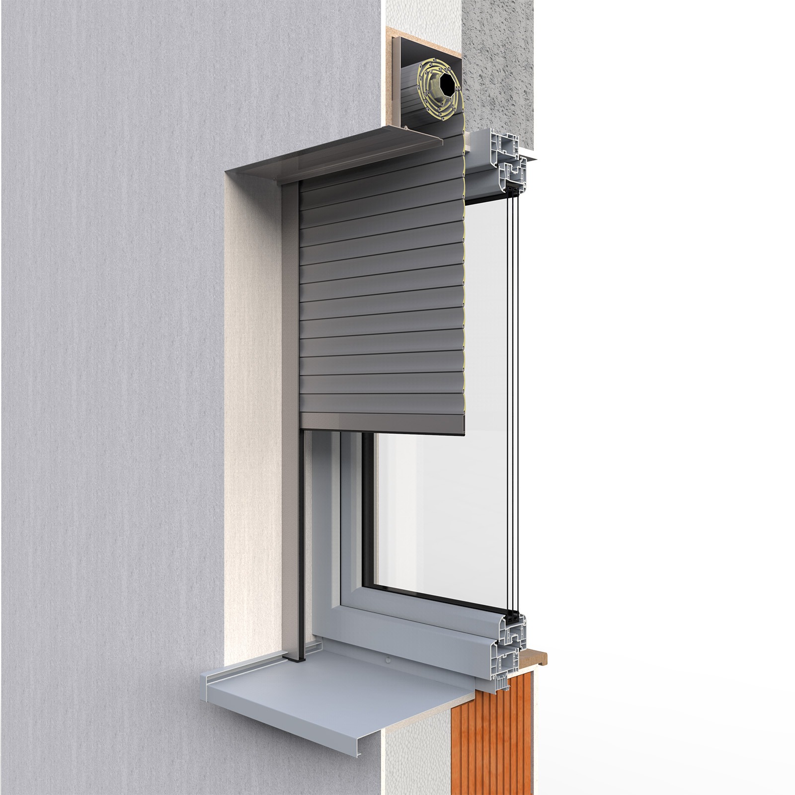 Předokenní montáž venkovních rolet je ideální pro dodatečnou instalaci. Návin s hřídelí je skrytý v přiznaném boxu, který může mít revizní klapku uvnitř nebo venku. Kromě různých barevných variant je možné zvolit i tvar boxu.