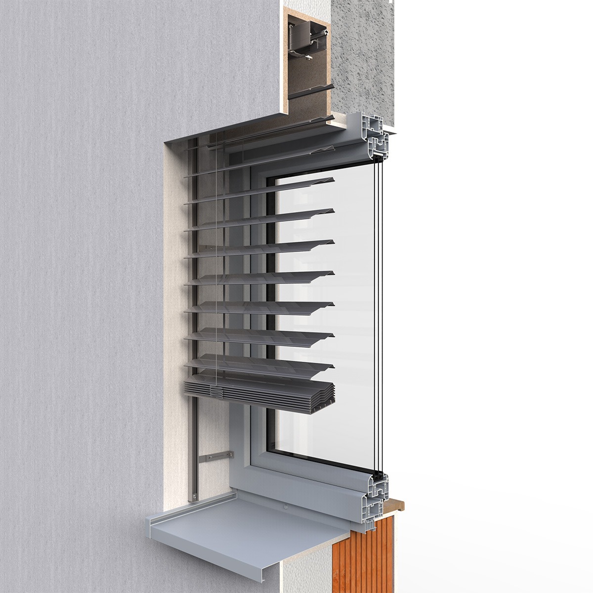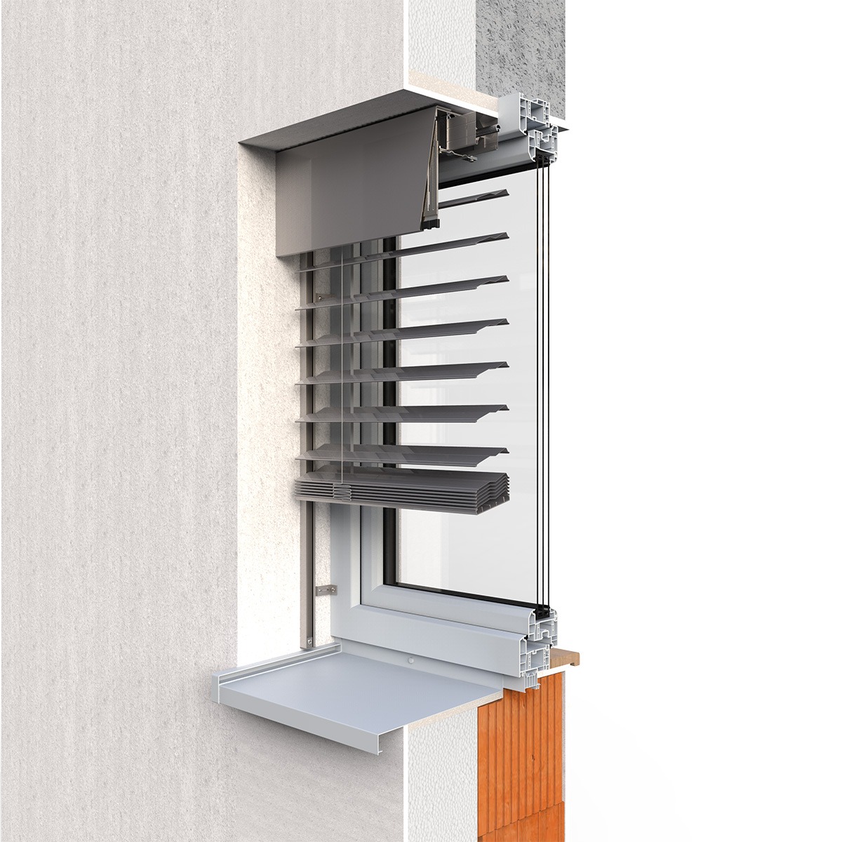 Podomítková schránka se v požadované šířce instaluje přímo na zdivo, poté se vyrovná zateplovacími panely a omítne. Díky tomu není vidět ani nábal lamel, ani hřídel s motorem. Toto řešení je ideální pro novostavby i rekonstrukce.